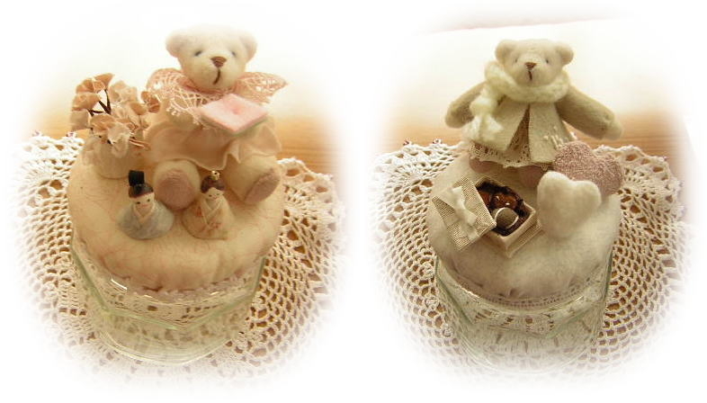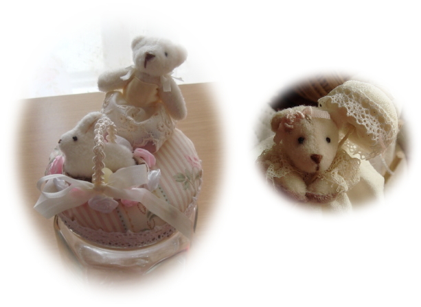今、去年から作ってるバッグのキルティングと最後のベア瓶を同時進行で作ってます♪