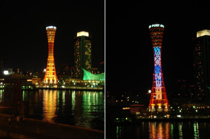 いつもは赤一色ですが最近LEDでイルミネーションになっているので